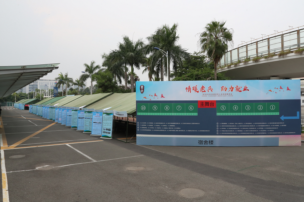 8月28日下午,宝安区退役军人事务局、宝安区人力资源局在福永街道联合举办了“情暖老兵 助力就业”2020年退役军人专场招聘会。万科集团、卓越集团、鸿荣源集团、龙城物业、顺丰速运、深圳航空、圣心科技等近50家企业共提供2500多个就业岗位,700多名军人参加应聘。