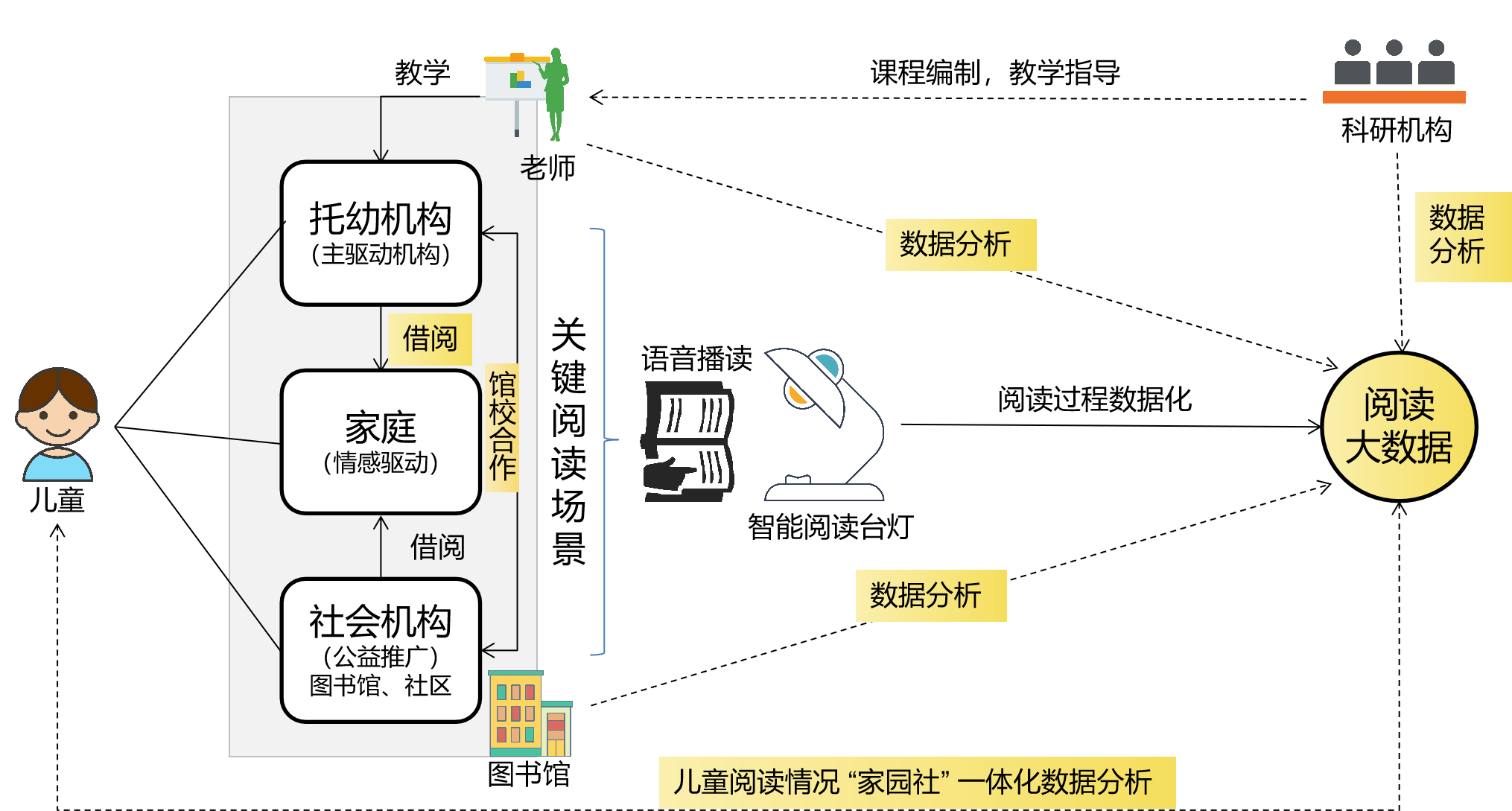 用智能手段助力幼儿阅读,让孩子养成自主阅读习惯,提升阅读能力,用数据记录孩子在家庭、幼儿园、社会图书馆的阅读情况,让家长及教育工作者进行更科学的指导与引导。“家园社”一体化的学龄前儿童阅读大数据中心的搭建,是广州通美科技有限公司和图书馆、幼儿园“校馆企”科技合作助力阅读的探索与尝试,随着智能阅读灯的普遍应用,学龄前儿童的智能阅读时代即将开启。