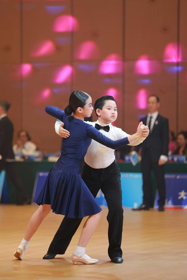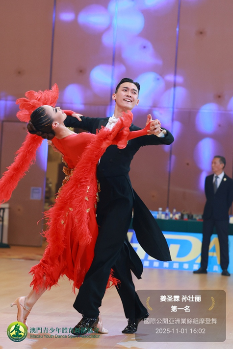 国际公开业余组摩登舞决赛由中国吉林体育运动学校姜圣霖和孙壮丽获得冠军